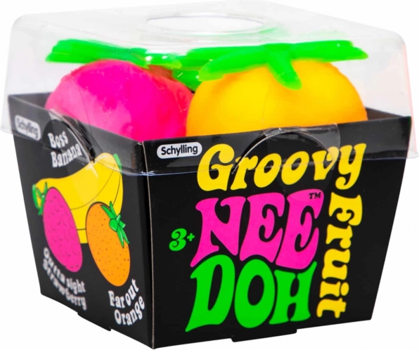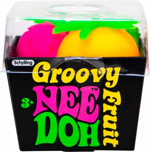 Schylling Groovy NeeDoh knijpfruit biedt een unieke manier om plezier te hebben en tegelijkertijd rust te vinden. Deze fruitballen zijn ideaal voor spelen onderweg of als middel ter verlichting van angst. Gemaakt van niet-giftig materiaal dat altijd terugveert naar de oorspronkelijke vorm. Ze zijn geschikt om te knijpen, te rekken en te trekken, wat focus en aandacht ondersteunt. Ze zijn geschikt voor kinderen en volwassenen met ADD, ADHD, OCD, autisme en angst.