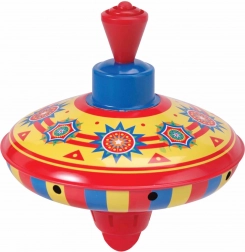 Ontdek de magie van traditioneel speelgoed – metalen tollen van het merk Schylling. Dit speelgoed is uitgerust met levendige kleuren en retro patronen die elk kind aanspreken. De tol draait door eenvoudig op de hendel te drukken, wat gepaard gaat met een typisch geluid dat kinderen geweldig vinden.