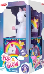 Ontdek de betoverende combinatie van een klassieke speeldoos en moderne effecten. Wanneer je aan de slinger draait, klinkt een geliefde melodie en uit het kleurrijke doosje springt een pluche eenhoorn die oplicht met een zacht, meerkleurig licht. Ideaal als cadeau voor jonge kinderen die dol zijn op verrassingen, muziek en sprookjesfiguren.