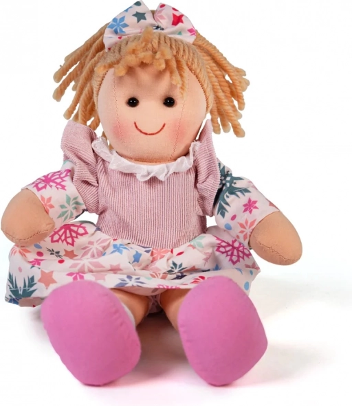 Zachte textielen en garenhaar nodigen uit om te knuffelen, terwijl het kleurrijke jurkje met sterretjespatroon de kleurwaarneming en fantasie stimuleert. Spelen met de pop ontwikkelt de fijne motoriek, sociale vaardigheden en het vermogen om te zorgen en te helpen.