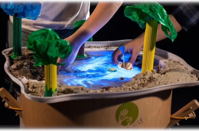 - Spel met water en zand, schilderen met aquarel en gouache, tekenen met uitwasbare stiften