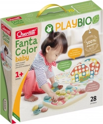 De Quercetti FantaColor Baby mozaïek maakt deel uit van de PlayBio serie, wat betekent dat het is gemaakt van 100% gerecycleerde materialen, die ecologisch en milieuvriendelijk zijn. Het bestaat uit 28 onderdelen, inclusief een geperforeerde plaat en 21 gekleurde pinnetjes die eenvoudig op hun plaats passen. Spelen met deze mozaïek ondersteunt: