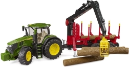 Bruder Tractor John Deere met achteraanhanger en boomstammen