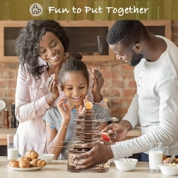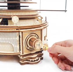 Laser-gesneden onderdelen van 2 mm lindehouten triplex passen exact in elkaar. Het mechanisme is stabiel, decoratief en gemaakt voor langdurig gebruik.