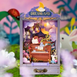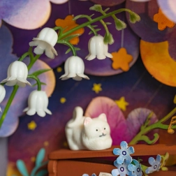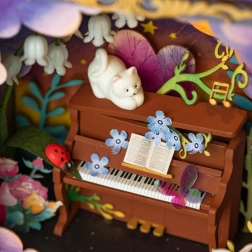 Dit betoverende miniatuur diorama laat je onderdompelen in een fantasiewereld. Binnenin de kast bevindt zich warm licht dat een magische diepte aan de scène geeft. Een praktische lade in de onderkant van de kast maakt het mogelijk kleine voorwerpen op te bergen. De montage omvat het werken met multiplex en kartonnen onderdelen, die eenvoudig te bereiden zijn. De elektrische componenten zijn vooraf gemonteerd, wat de installatie vergemakkelijkt. Je hebt alleen een schaar nodig, aangezien de andere gereedschappen inbegrepen zijn.