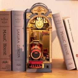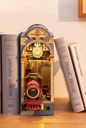 Deze doe-het-zelf set biedt de mogelijkheid om een eigen miniatuurmodel van een treinstation te maken, dat u tussen de boeken op de plank kunt plaatsen. Het bevat 258 onderdelen, waaronder details zoals het perron, bankjes, bagage en functionerende klok, wat het een geweldige decoratie maakt.
