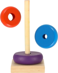 Het plaatsen van ringen op de staaf bevordert de motorische vaardigheden en stimuleert sensorische integratie.