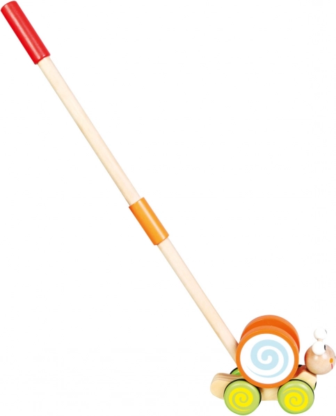 Hoogwaardige, populaire houten speelgoed in het ontwerp van een slak. Een speelgoed dat het kind voor zich uit kan duwen, helpt de motorische vaardigheden te ontwikkelen. Kinderen leren daarbij ook kleuren en dieren onderscheiden. De duwspeelgoed heeft rubberen wielen voor stille werking. Kinderen kunnen het zowel binnen als buiten duwen of trekken. Een prachtig cadeau voor uw kind. Belangrijkste kenmerken: ondersteunt het kind bij de eerste stapjes, leuk en schattig, ontwikkelt motorische vaardigheden