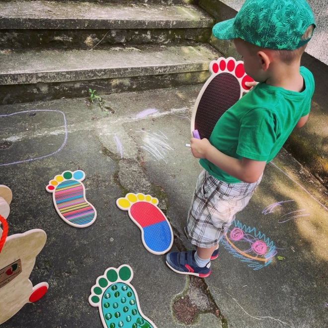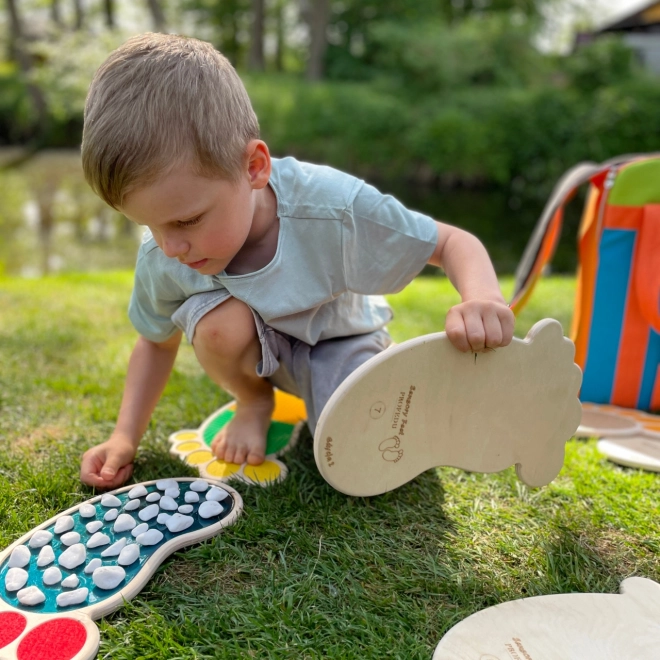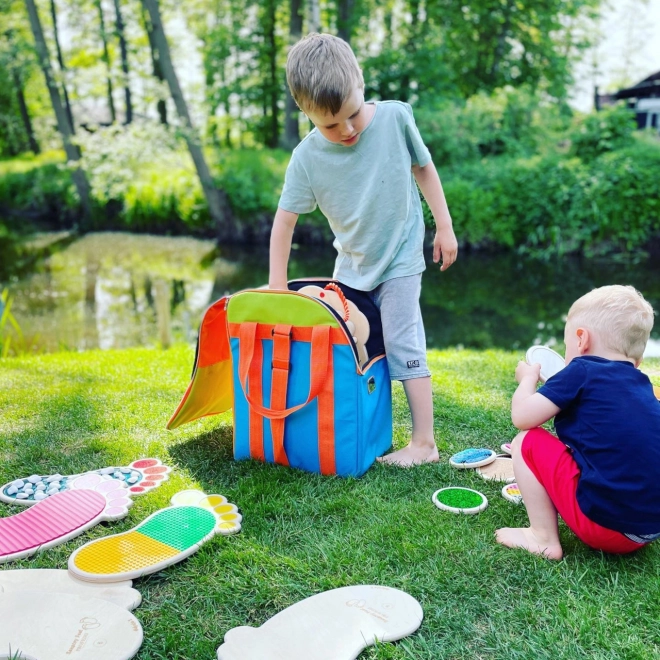 De set van sensorische voetstappen en cirkels is ontworpen om stevig en duurzaam te zijn, ideaal voor dagelijks gebruik. Kleurrijke en creatieve ontwerpen voegen esthetiek toe aan uw ruimte en kunnen ook worden gebruikt voor verschillende activiteiten. Stijlvolle en stevige houten organisatoren zorgen voor eenvoudige opslag van de set.