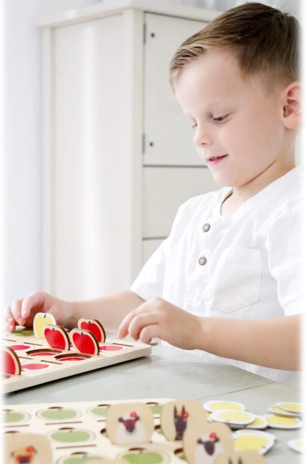 Kleurrijke illustraties van dieren en appels op stevige borden nodigen uit tot spelen en zijn bestand tegen intensief gebruik door kinderen. Ideaal voor herhaalde potjes thuis en onderweg.