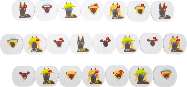 De set met 22 kaartjes met personages maakt het mogelijk om de klassieker “raad eens wie ik ben” te spelen en dient tevens voor geheugentraining in de memory-modus – dubbele portie plezier in één verpakking.