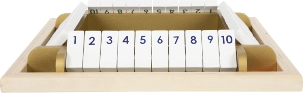 Deze moderne versie van de klassieker SHUT THE BOX met elegante gouden details ondersteunt kinderen bij de ontwikkeling van vroege wiskunde, logica en focus. De kantelbare klepjes met de cijfers 1–10 stimuleren het oefenen van sommen van dobbelsteenworpen en snel beslissen – en dat alles op een leuke manier.