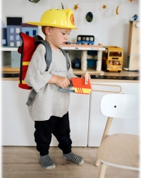 Deze hoogwaardige houten kettingzaag voor kinderen combineert een duurzame afwerking met een veilig design voor dagelijks spel. Opvallende rode en gele accenten met de realistische zaagvorm prikkelen de fantasie en stimuleren zowel rollenspel als de fijne motoriek.
