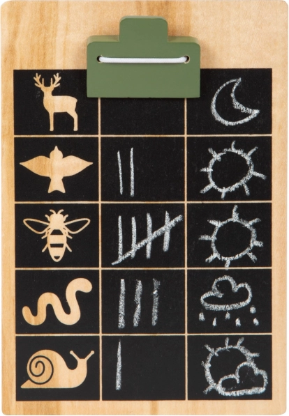 - Bord met clip voor het schrijven en documenteren van nieuwe ontdekkingen.