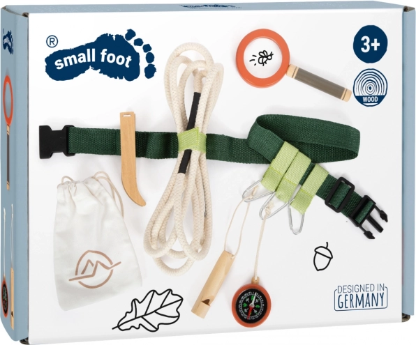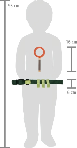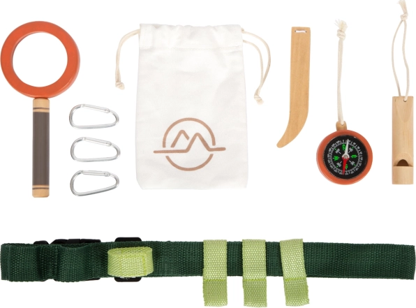 Ga op onvergetelijke avonturen met een riem vol uitrusting. Kinderen zullen enthousiast zijn over de duurzame riem, die een houten fluit, een vergrootglas, een pincet, een kompas, een touw en een stoffen zakje bevat. Alles is eenvoudig te bevestigen met behulp van oogjes en karabiners.