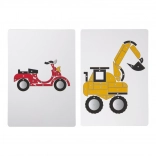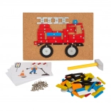 Met dit klassieke hamerspel in moderne kleuren kunnen kinderen afbeeldingen van vervoersmiddelen en bouwmachines maken volgens zes voorbeeldkaarten of naar eigen fantasie. Belangrijkste kenmerken: