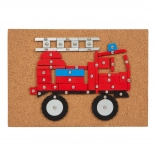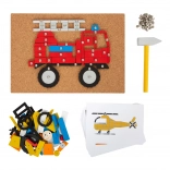 Uitgebreide creatieve speelset met het thema verkeer, met een kurken ondergrond, een houten hamer en vele houten onderdelen in verschillende vormen en kleuren. Helpt creativiteit, vaardigheid en oog-handcoördinatie te ontwikkelen.