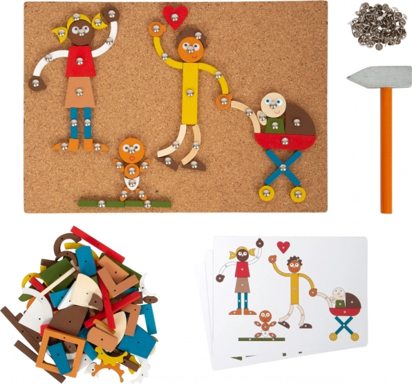 Dit hamerspel van Small Foot biedt geweldig speelplezier gecombineerd met de ontwikkeling van kindercreativiteit en motoriek. Kinderen kunnen verschillende afbeeldingen samenstellen volgens de zes voorbeeldkaarten of naar eigen fantasie. Dankzij moderne kleuren en duurzame materialen is het speelgoed aantrekkelijk, ook voor veeleisende jonge kunstenaars.