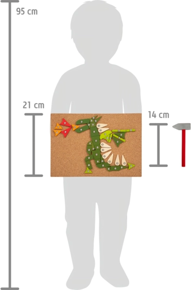 Dit hamerspel is ideaal voor kleine ontdekkers met fantasie. Het ontwikkelt motorische vaardigheden en stimuleert creativiteit bij kinderen. De set bevat stukjes in verschillende vormen en kleuren die eenvoudig in de kurken onderlegger kunnen worden gehamerd.