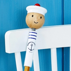 Ontdek een speels en tegelijk elegant accessoire voor regenachtige dagen. De VILAC-paraplu met zeemansthema combineert tijdloos design met hoogwaardige materialen – carbon voor lichtheid en duurzaamheid, hout voor een prettige grip en lange levensduur. De originele handgreep met veerkrachtig bevestigde kop voegt zowel stijl als functionaliteit toe.