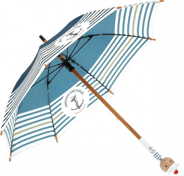 Veiligheid staat voorop: een speciaal mechanisme beschermt kinderhandjes bij het sluiten. Dankzij de samenwerking met de Franse marine draagt deze paraplu een authentiek zeemanskarakter, geliefd bij kinderen én volwassenen die hun innerlijke kind koesteren.