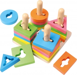 Gekleurde geometrische stukken met uitsparingen stimuleren kinderen om vormen en kleuren op een natuurlijke manier te herkennen, en ontwikkelen tegelijk logisch denken en concentratie.