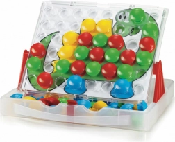 De mozaïek in een praktisch koffertje maakt het mogelijk om vrolijke afbeeldingen te leggen volgens de meegeleverde sjablonen of naar eigen fantasie. De plaat kan in de steunen worden geschoven en ook verticaal worden gebruikt voor nog comfortabeler spelen. Grote, kleurrijke pinnetjes zijn veilig en gemakkelijk vast te pakken, zelfs voor kleine kinderhanden.