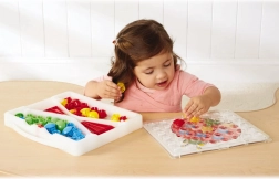 Grote, kleurrijke pinnetjes zijn gemakkelijk vast te pakken en ontwikkelen de fijne motoriek, oog-handcoördinatie en kleurenherkenning.
