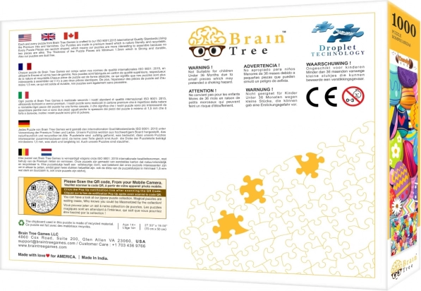 Voor comfortabel puzzelen krijg je alles wat je nodig hebt: een kwaliteitsposter ter referentie, praktische kartonnen vakjes om te sorteren, een houder voor het doosdeksel voor een beter zicht op het voorbeeld en een stevig hersluitbaar zakje dat de stukjes beschermt tijdens transport en opslag.