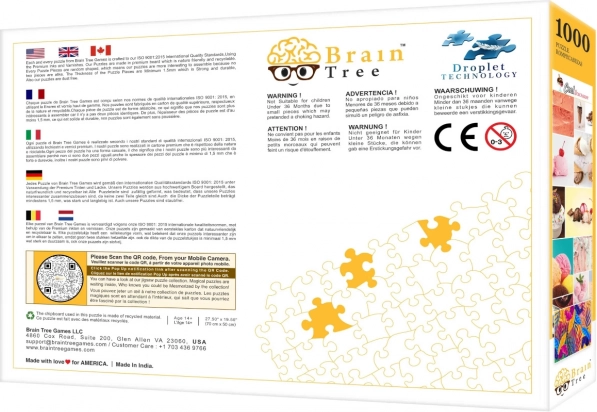 In de doos vind je alles voor comfortabel puzzelen: een poster van dezelfde kwaliteit als het puzzelbeeld, meerdere kartonnen sorteervakken, een standaard voor het doosdeksel voor beter overzicht en bij de set van 1000 stukjes ook een stevig zip-zakje voor veilig opbergen van de stukjes.