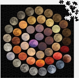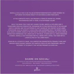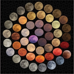 Het motief is samengesteld uit astrofoto’s van Marcella Julia Pace, gemaakt op verschillende locaties in Italië gedurende tien jaar. Elke opname laat zien hoe de kleuren van de volle maan veranderen – van rood en geel bij de horizon tot zeldzame blauwtinten veroorzaakt door stofdeeltjes in de atmosfeer.