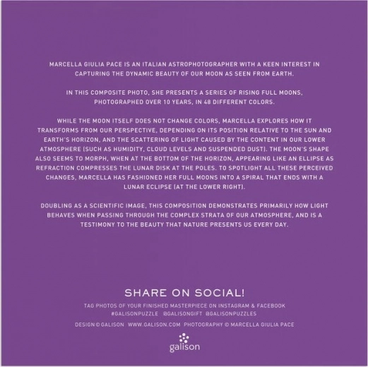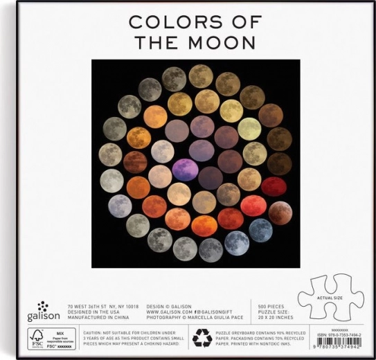 Ontdek het fascinerende kleurenpalet van de maan met deze premium puzzel van Galison met 500 stukjes. Topkwaliteit matte druk, gerecyclede materialen en FSC-verpakking. Inclusief referentieposter.