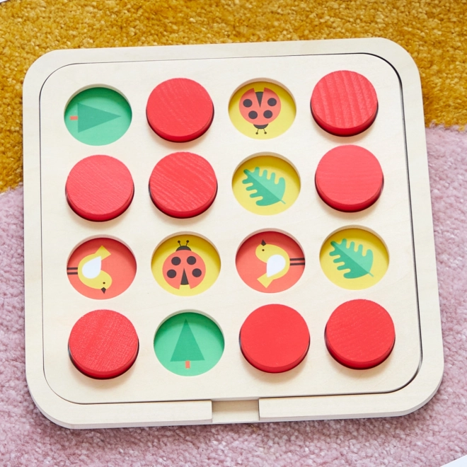 Een leuk en educatief memoryspel van duurzaam materiaal dat meegroeit met kinderen. Dankzij de set verwisselbare kaarten kunt u het thema op elk moment aanpassen – van natuur en dieren tot fruit, speelgoed of voertuigen. Grote, robuuste houten schijven zijn ideaal voor kleine handjes en ondersteunen de fijne motoriek, het geheugen en de concentratie.
