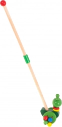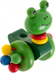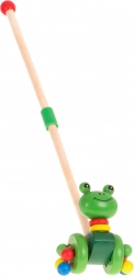 Een schattige houten kikker op wielen, die kan worden voortgeduwd met een afneembare stang, is het ideale speelgoed voor kinderen die net leren lopen. Dit speelgoed motiveert niet alleen om te wandelen, maar ontwikkelt ook hun coördinatie en balans.
