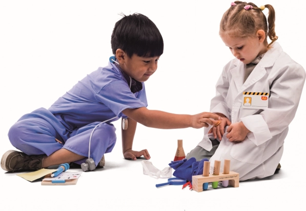 - Vermindert angst voor de dokter door op een natuurlijke manier kennis te maken met instrumenten.