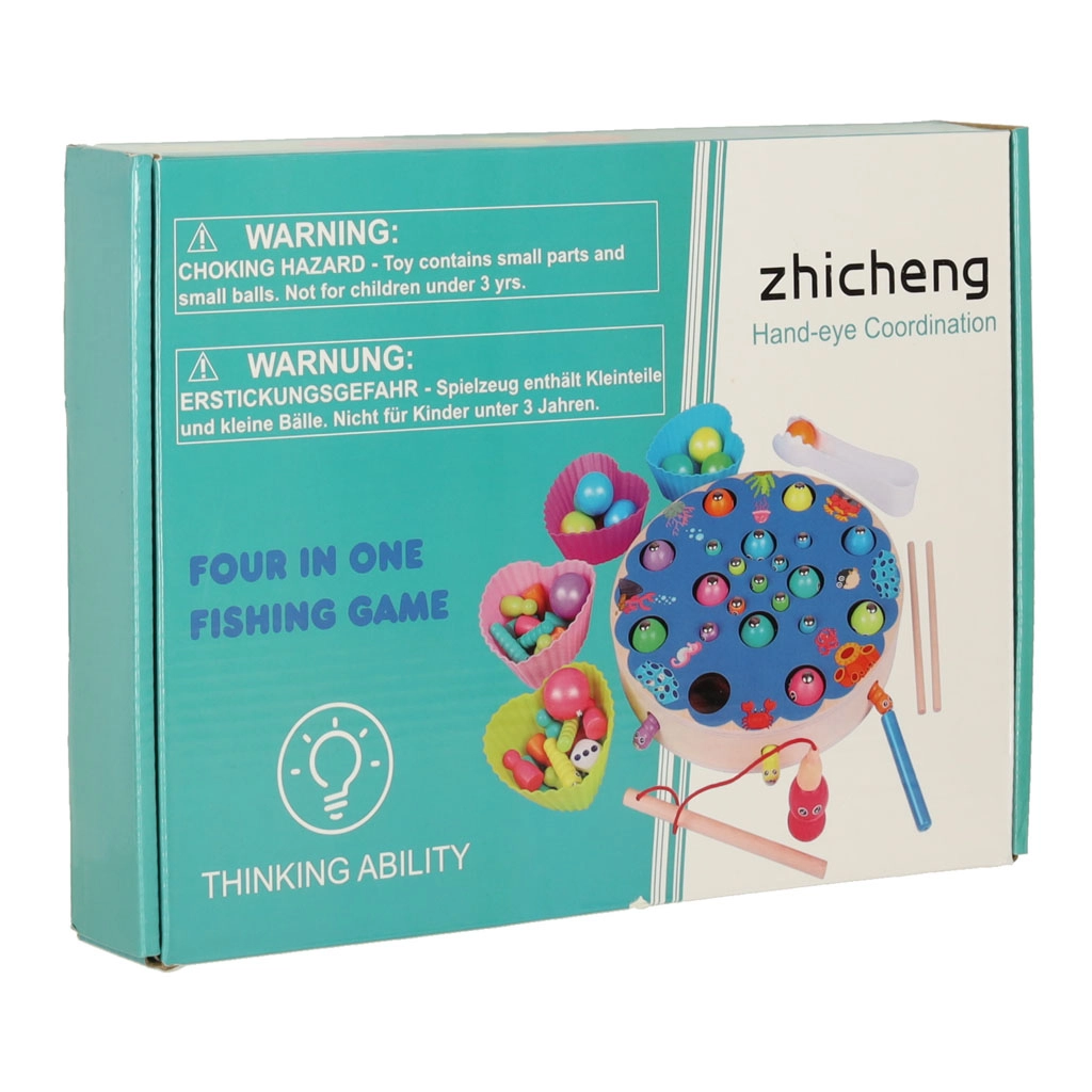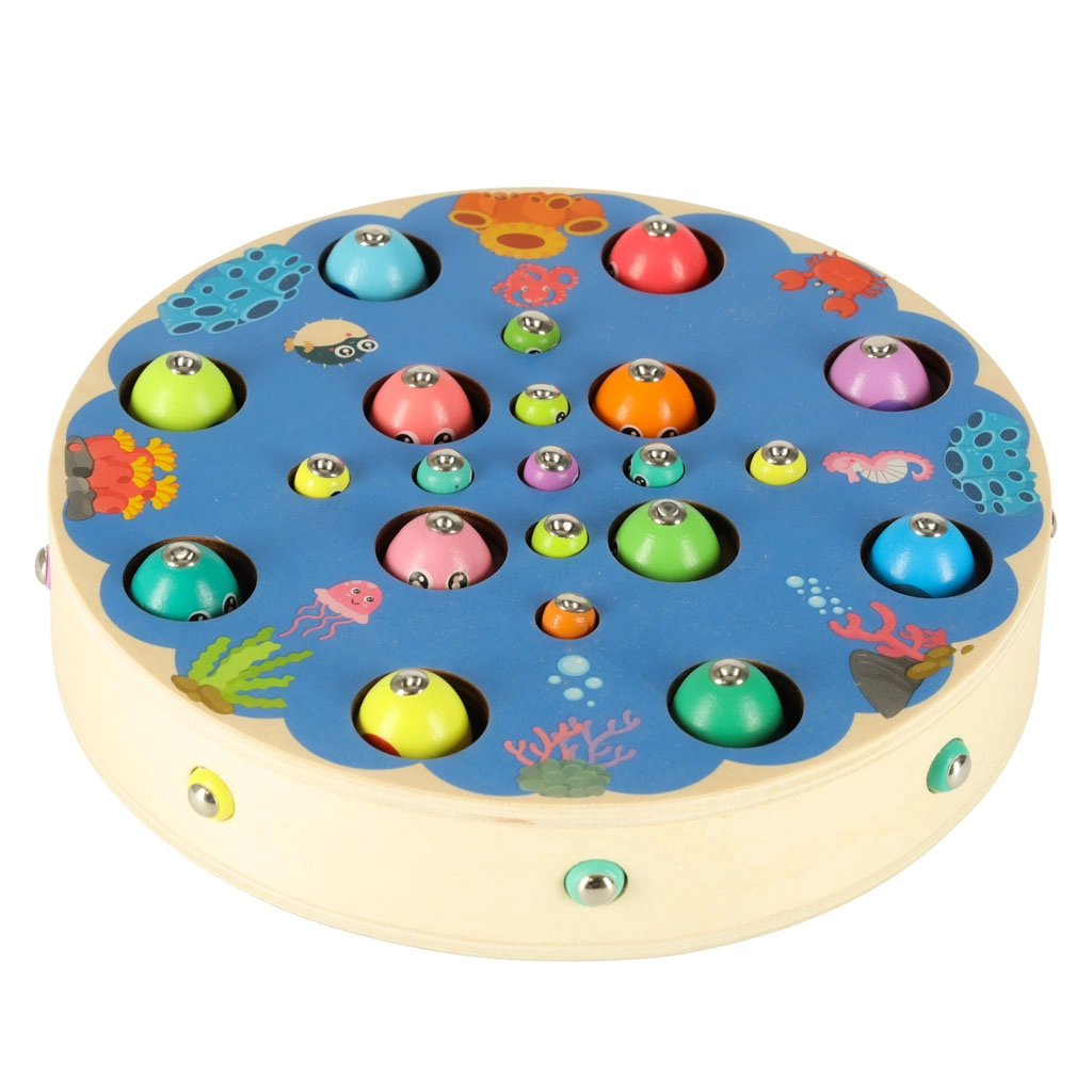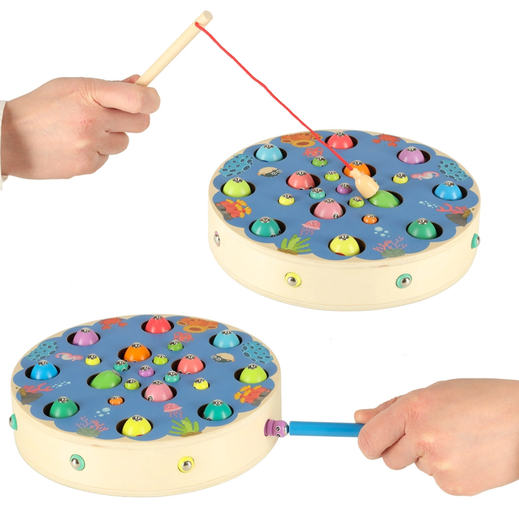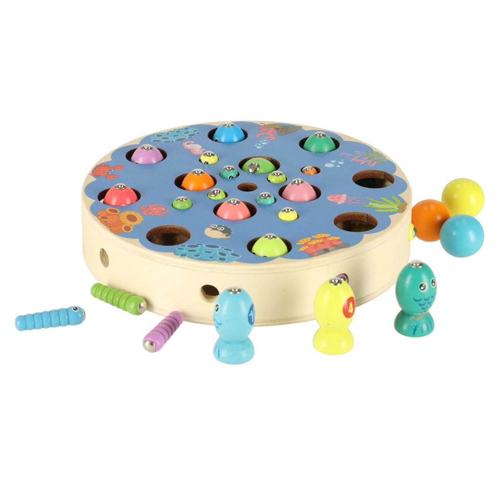 Kinderen vangen kleurrijke visjes en rupsjes met magnetische hengels – ze trainen nauwkeurigheid, geduld en oog-handcoördinatie op een speelse manier.