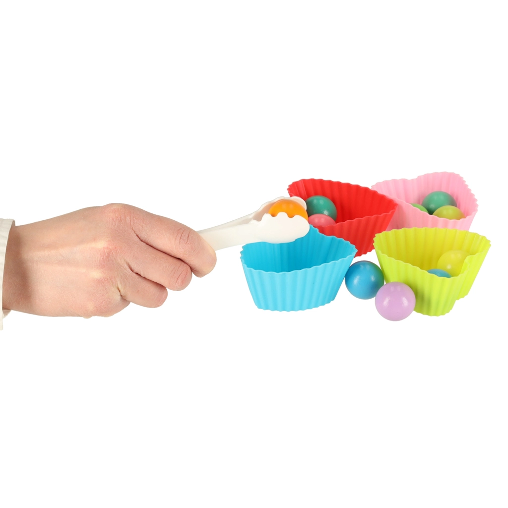 - Veelzijdige activiteiten: magnetisch vissen, rupsjes vangen, sorteren in siliconen bakjes, verplaatsen met pincet, bewegen over het speelbord.