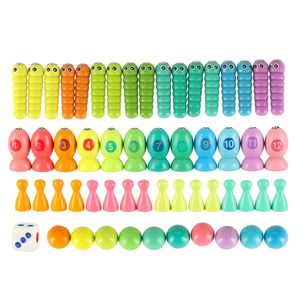 Een leuk en leerzaam houten spel voor kinderen vanaf 3 jaar dat magnetisch vissen, rupsjes vangen, kleuren sorteren en tellen combineert. Het bevordert de fijne motoriek, oog-handcoördinatie en logisch denken. Kleurrijke, glad geschuurde onderdelen van veilig gelakt hout nodigen uit tot ontdekken en gezamenlijk speelplezier met het hele gezin.