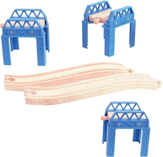 Geniet van speelplezier met de houten brugconstructie van het bekende merk Bigjigs Rail. Dit product stelt jonge bouwers in staat te dromen en complexe brugstructuren voor hun treinbanen te creëren. De set bevat drie verhoogde elementen en rails voor stijgen en dalen, die interessante en gevarieerde bouwmogelijkheden bieden.