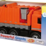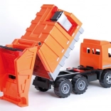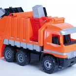 Deze oranje vuilniswagen, geïnspireerd op de Mercedes ACTROS, biedt een flinke portie actievol speelplezier. De drieassige constructie zorgt voor stabiliteit, de hoogwaardige kunststof weerstaat intensief kinderspel en de twee ledigingsmechanismen (achter en aan de rechterzijde) zorgen voor realistisch kiepen van afval. In de verpakking zitten twee vuilnisbakken die eenvoudig kunnen worden bevestigd en geleegd.