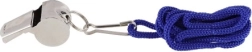 Deze metalen fluit in glanzend zilver is ontworpen voor een duidelijke geluidsprojectie, waardoor deze geschikt is voor sportief of noodgebruik. Geleverd met een blauwe textielkoord, die comfortabel om de nek gedragen kan worden. Ideaal voor trainers, scheidsrechters, maar ook voor familiebijeenkomsten.