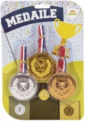 Medailles voor kleine winnaars! Deze set van drie plastic medailles met koord is ideaal voor kinderen die meedoen aan verschillende wedstrijden en uitkijken naar een beloning voor hun inzet.