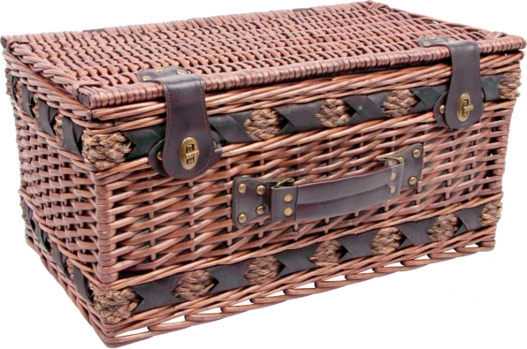 De Deluxe picknickmand is de ideale keuze voor wie niet alleen functionaliteit, maar ook esthetiek waardeert. Deze mand is volledig uitgerust voor vier personen, inclusief borden, bestek, wijnglazen, een mes, peperstrooier en zoutvaatje. Het getoonde design combineert rustieke charme met moderne functionaliteit.
