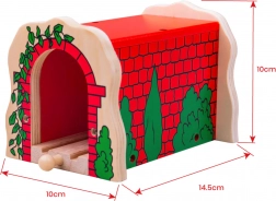 Geef je treinbaan een nieuwe dimensie met de houten bakstenen tunnel. Hij is gemaakt van hoogwaardig hout, heeft een stevige constructie en een aantrekkelijk ontwerp dat doet denken aan een bakstenen gebouw bedekt met groen.