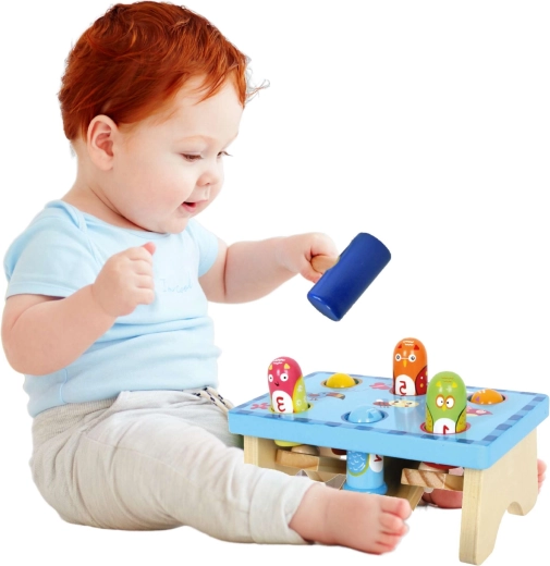 Dankzij de stevige afwerking en het ergonomische hamertje oefenen kinderen fijne motoriek, coördinatie van bewegingen en geduld. De gekleurde en genummerde pinnen helpen bij het herkennen van kleuren en tellen, waardoor spelen vanzelf samengaat met leren.