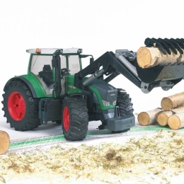 Bruder Tractor FENDT 936 Vario + voorlader. De Bruder tractor FENDT 936 VARIO met voorbak is een gedetailleerd model met veel functies. Hij heeft een te openen motorruimte, glazen cabine, in hoogte verstelbare trekhaak, functionele besturing, en er wordt een tweede stuur met een langere arm meegeleverd dat via de uitschuifbare opening in het dak in het bestaande stuur in de cabine kan worden gestoken. Dit maakt de bediening van de machine veel eenvoudiger. De tractor is uitgerust met een voorbak. Gemaakt in Duitsland van hoogwaardige materialen. Belangrijkste eigenschappen: voorbak, te openen motorruimte, glazen cabine, in hoogte verstelbare trekhaak, tweede stuur voor eenvoudig sturen, gemaakt in Duitsland.