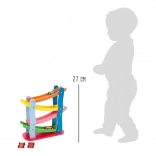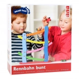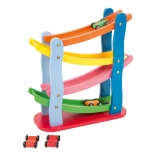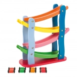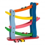 Houten racebaan voor kinderen is een kleurrijk speelgoed dat urenlang plezier biedt. Met behulp van de kleurrijke autootjes ontwikkelen kinderen hun motoriek en leren ze kleuren herkennen terwijl ze snel naar beneden racen over de stevige houten banen.