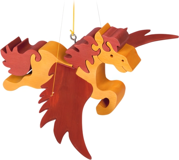 Betoverende houten decoratie voor de kinderkamer – een vliegend paard dat bij het aan het touwtje trekken begint te “klapperen met de vleugels”. Handmatig gladgeschuurd hout, veilig ontwerp en eenvoudige ophanging maken van deze hangdecoratie een charmante toevoeging boven het bedje of in de speelhoek.