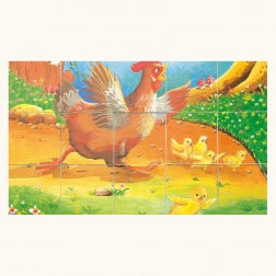 Ontdek de tijdloze charme van houten blokken met prachtig geïllustreerde scènes van het platteland. Elk van de 6 afbeeldingen (gans bij de beek, schattige pup in de wei, biggetjes bij de stal enz.) helpt kinderen op een natuurlijke manier hun verbeelding en kennis van dieren te ontwikkelen.