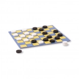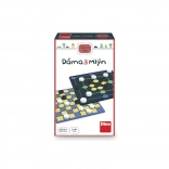 Het dubbelzijdige speelbord laat je snel wisselen tussen dames en molen. Eén set stenen is genoeg voor beide spellen, zodat je meteen kunt beginnen.